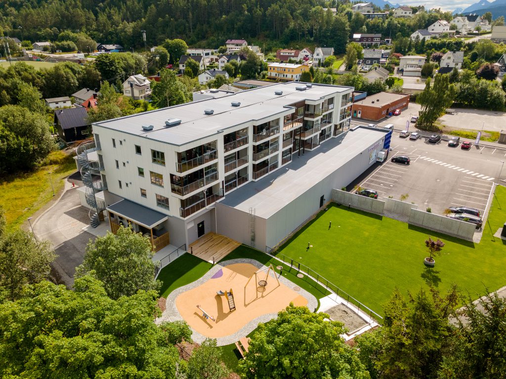 Op de begane grond van dit complex in een supermarkt gevestigd. Door op heeft Kodumaja in 2020 een drie-laags appartementen gebouw, met in totaal 21 woningen gerealiseerd. Waarbij ook de balkons en galerijen een integraal